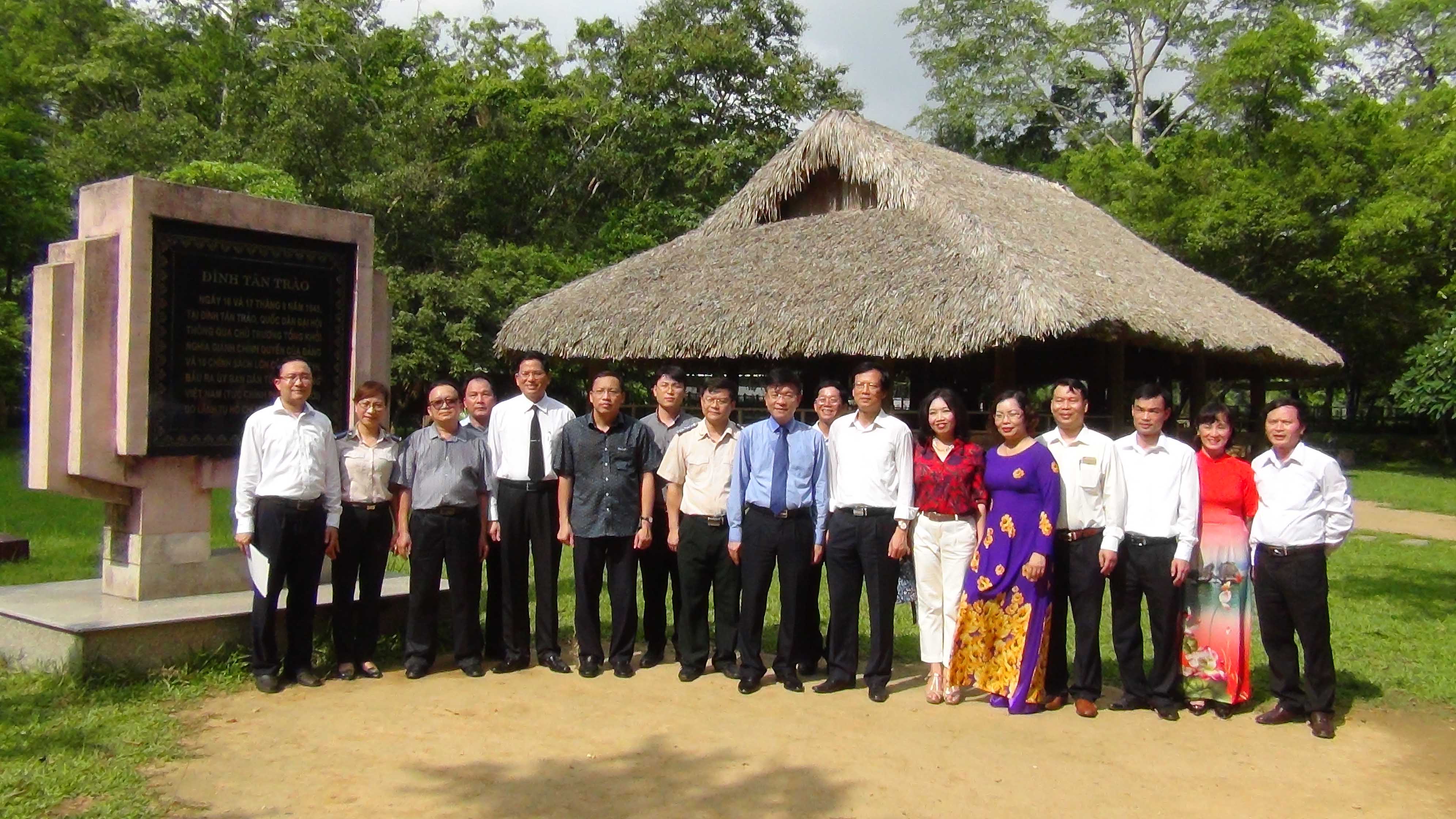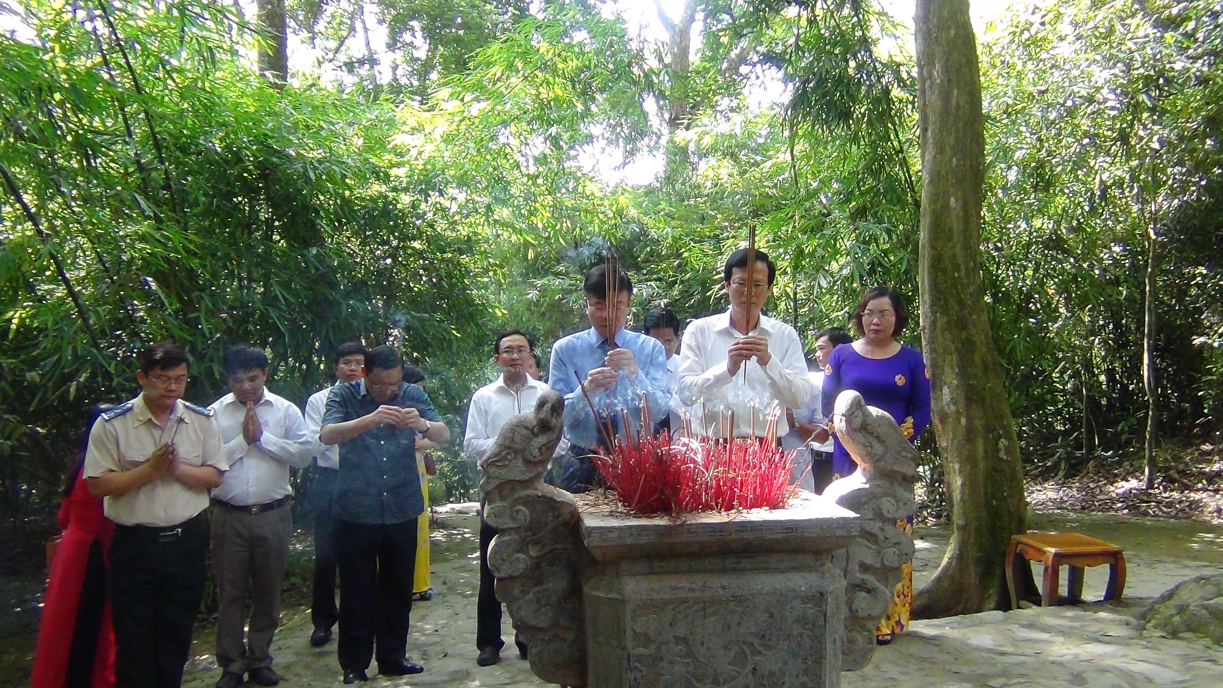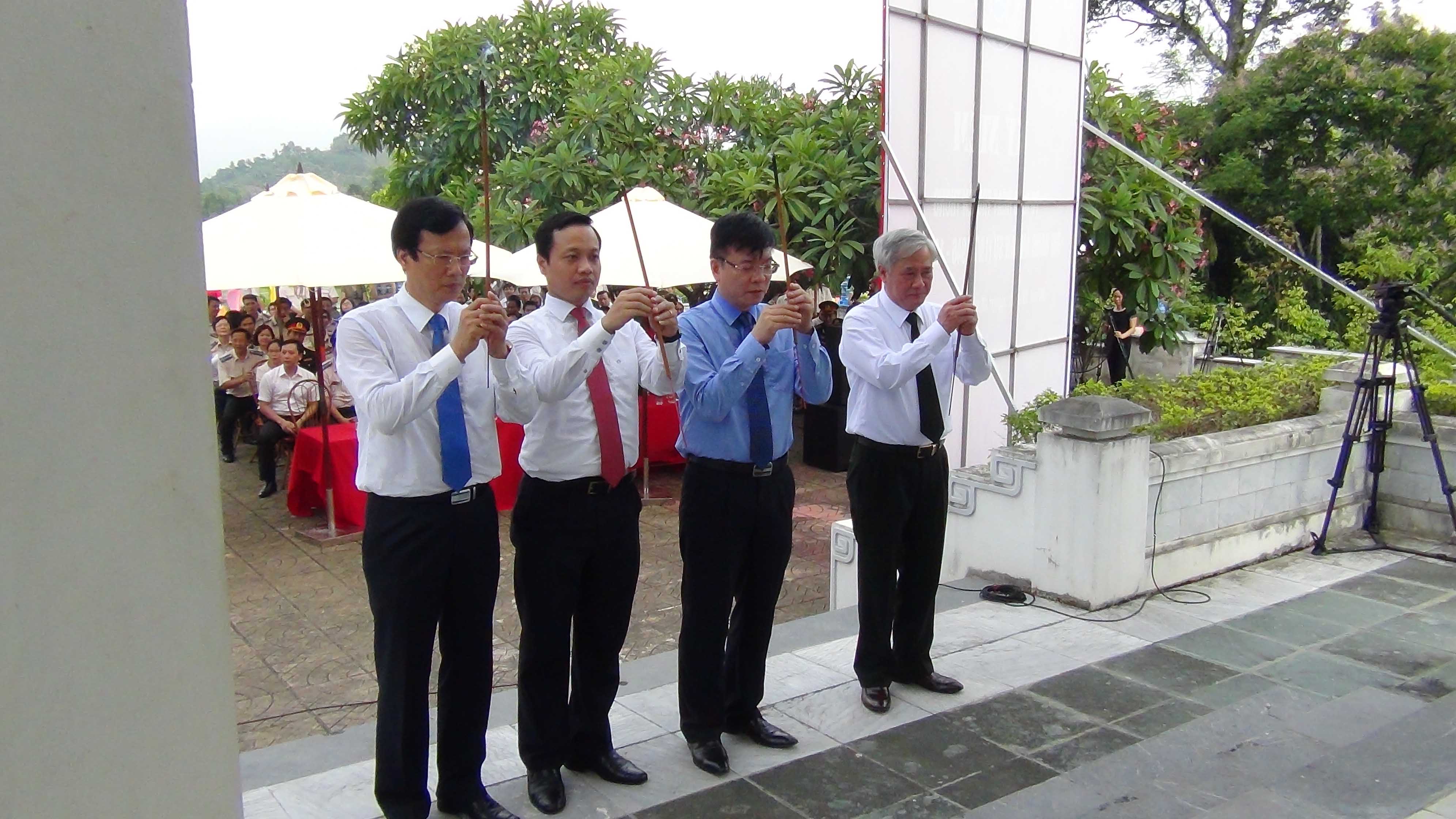 Đ/c Lê Thành Long, Bộ trưởng Bộ Tư pháp; Đ/c Trần Tiến Dũng, Thứ Trưởng Bộ Tư pháp; Đ/c Phạm Minh Huấn, Phó Bí thư Tỉnh ủy - Chủ tịch UBND tỉnh Tuyên Quang và Đ/c Hoàng Sỹ Thành, Tổng Cục trưởng Tổng Cục THADS dâng hương tại Bia tưởng niệm khu di tích cơ quan Bộ Tư pháp