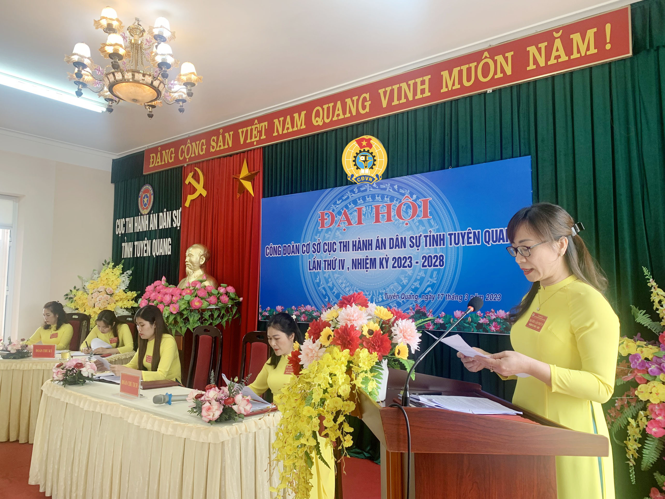 Ngày 17/3/2023, Công đoàn cơ sở Cục Thi hành án dân sự đã tổ chức Đại hội Công đoàn lần thứ IV, nhiệm kỳ 2023-2028. Dự và chỉ đạo Đại hội có đồng chí Nguyễn Tuyên, Bí thư Chi bộ, Cục trưởng Cục Thi hành án dân sự; đ/c Hoàng Anh Tuấn, Phó chủ tịch Công đoàn Viên chức tỉnh Tuyên Quang.