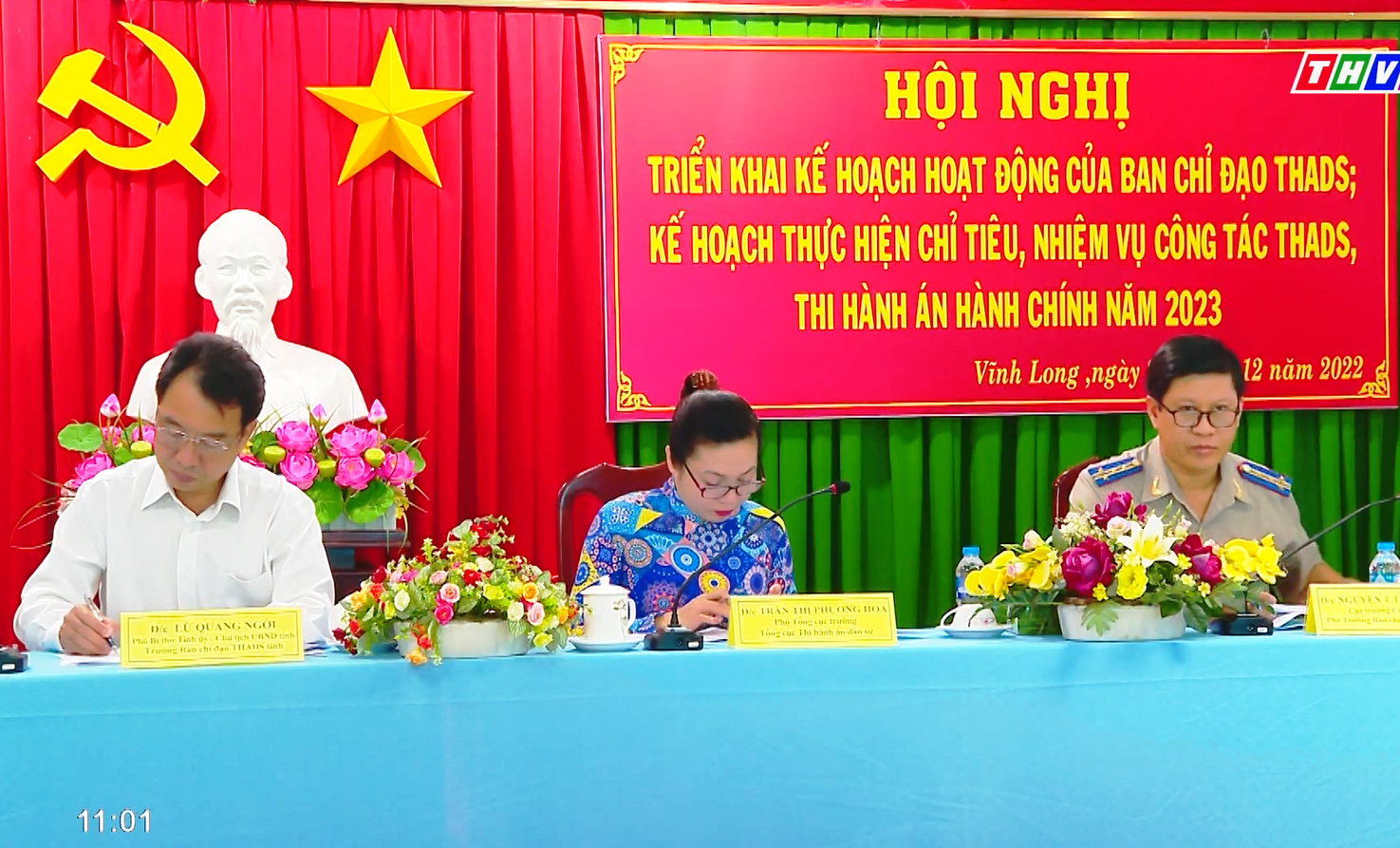 Thực hiện Công văn số 7543/UBND-TCDNC của Ủy ban nhân dân tỉnh Vĩnh Long về việc thống nhất cho tổ chức Hội nghị triển khai thực hiện chỉ tiêu, nhiệm vụ năm 2023, buổi sáng ngày 28/12/2022, Cục Thi hành án dân sự tỉnh Vĩnh Long tổ chức Hội nghị triển khai thực hiện chỉ tiêu, nhiệm vụ năm 2023. Tham dự và chủ trì Hội nghị có đồng chí Lữ Quang Ngời, Phó Bí thư Tỉnh ủy, Chủ tịch ủy ban nhân dân tỉnh Vĩnh Long, Trưởng ban chỉ đạo thi hành án dân sự tỉnh; tham dự hội nghị có đồng chí Trần Thị Phương Hoa, Phó Tổng cục trưởng Tổng cục Thi hành án dân sự, Bộ Tư pháp; đồng chí Nguyễn Thành Thanh Dũng, Cục trưởng; các Phó cục trưởng; Lãnh đạo các cơ quan khối Nội chính tỉnh; Lãnh đạo các sở, ngành có liên quan; Lãnh đạo Tòa án nhân dân tỉnh; Lãnh đạo Viện kiểm sát nhân dân tỉnh; Lãnh đạo Ngân hàng Nhà nước; Chủ tịch ủy ban nhân dân, Trưởng ban chỉ đạo thi hành án dân sự các huyện, thị xã, thành phố; Lãnh đạo, Chấp hành viên các đơn vị thuộc và trực thuộc Cục.