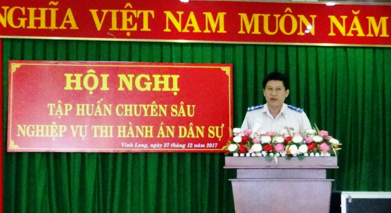 Thực hiện chỉ đạo của Cục trưởng Cục Thi hành án dân sự tỉnh, ngày 27 tháng 12 năm 2017 Cục Thi hành án dân sự tỉnh Vĩnh Long tổ chức Hội nghị tập huấn chuyên sâu nghiệp vụ thi hành án dân sự cho các đơn vị, Chi cục Thi hành án dân sự huyện, thị xã, thành phố trực thuộc. Hội nghị tập huấn có mục đích nâng cao trình độ chuyên môn, kỹ năng nghiệp vụ, kỹ năng tổ chức thi hành án dân sự, kỹ năng giải quyết khiếu nại, tố cáo; kịp thời tháo gỡ khó khăn, vướng mắc, rút kinh nghiệm những sai sót trong quá trình tác nghiệp thi hành án; góp phần đảm bảo chấp hành, thực hiện đúng pháp luật để hoàn thành tốt các chỉ tiêu, nhiệm vụ thi hành án dân sự năm 2018.