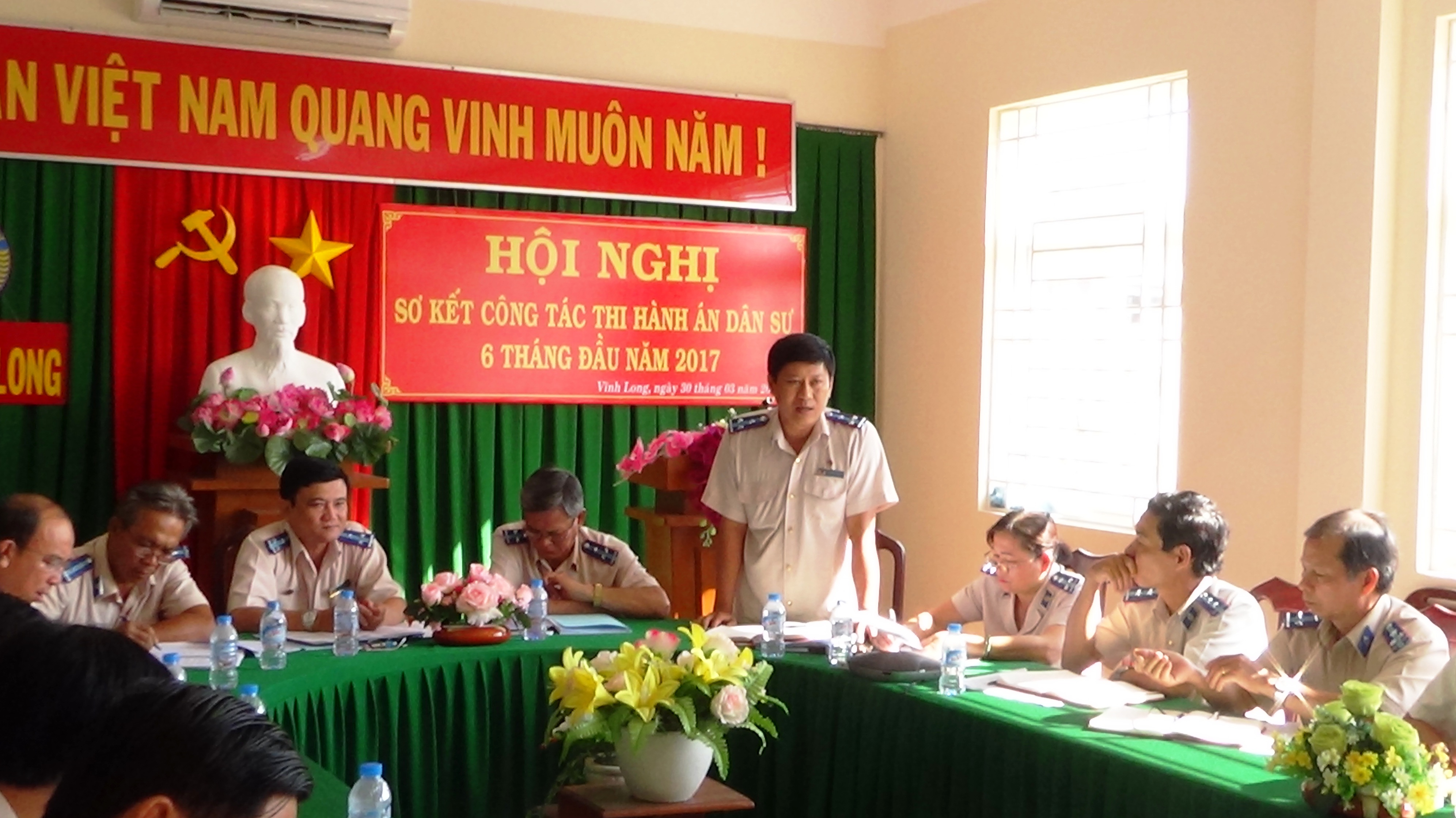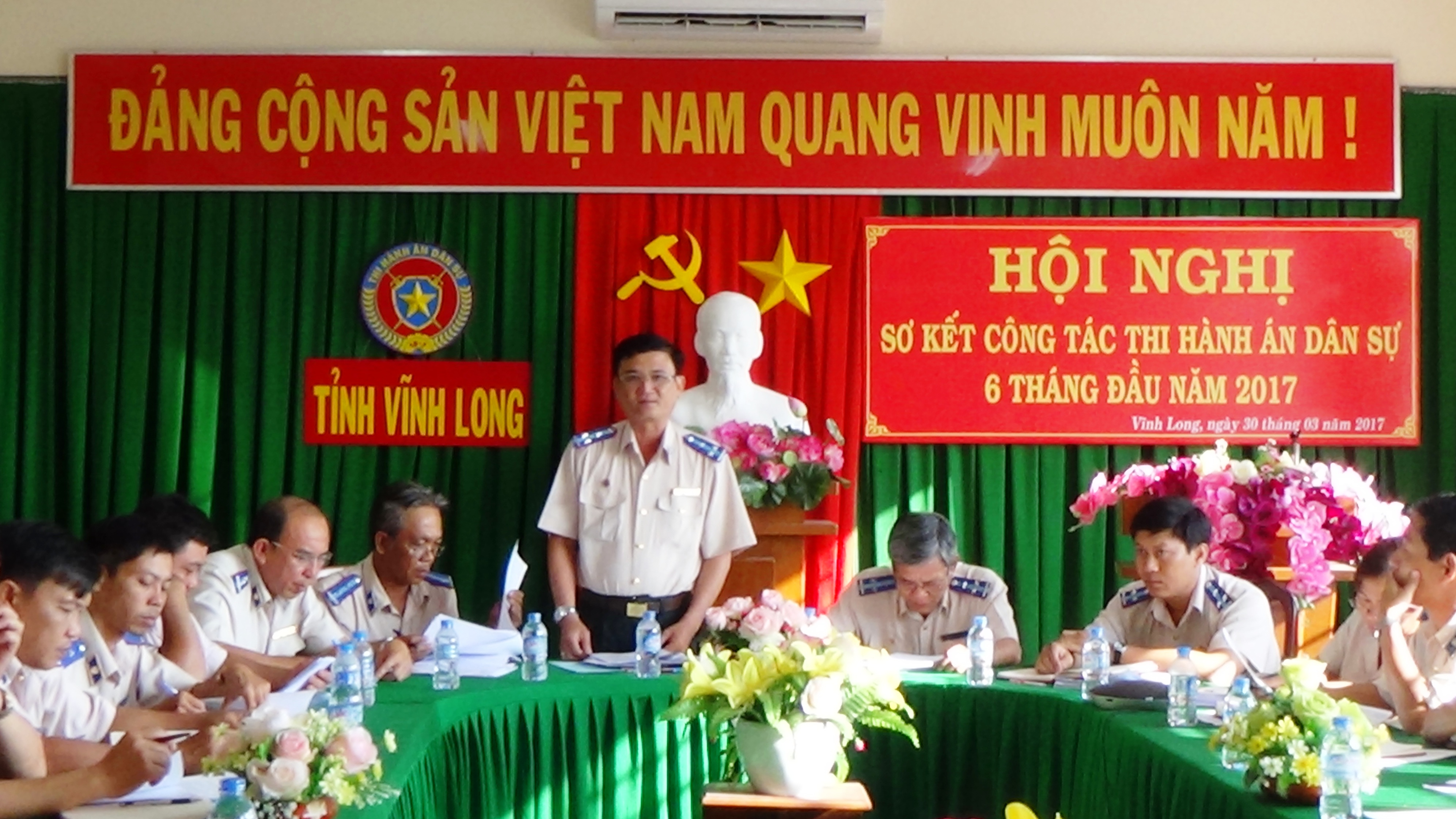 Ngày 30 tháng 3 năm 2017, Cục Thi hành án dân sự tỉnh Vĩnh Long đã tổ chức Hội nghị sơ kết công tác thi hành án dân sự 6 tháng đầu năm 2017. Dự và chỉ đạo Hội nghị có đồng chí Lâm Phước Nghĩa, Cục trưởng Cục Thi hành án dân sự tỉnh; Ban Lãnh đạo có đồng chí Huỳnh Văn Chương, Phó Cục trưởng Cục Thi hành án dân sự tỉnh; đồng chí Nguyễn Thành Thanh Dũng, Phó Cục trưởng Cục Thi hành án dân sự tỉnh; Lãnh đạo các phòng chuyên môn, Chấp hành viên, Thẩm tra viên thuộc Cục Thi hành án dân sự tỉnh; Ban Lãnh đạo các Chi cục Thi hành án dân sự huyện, thị xã, thành phố.