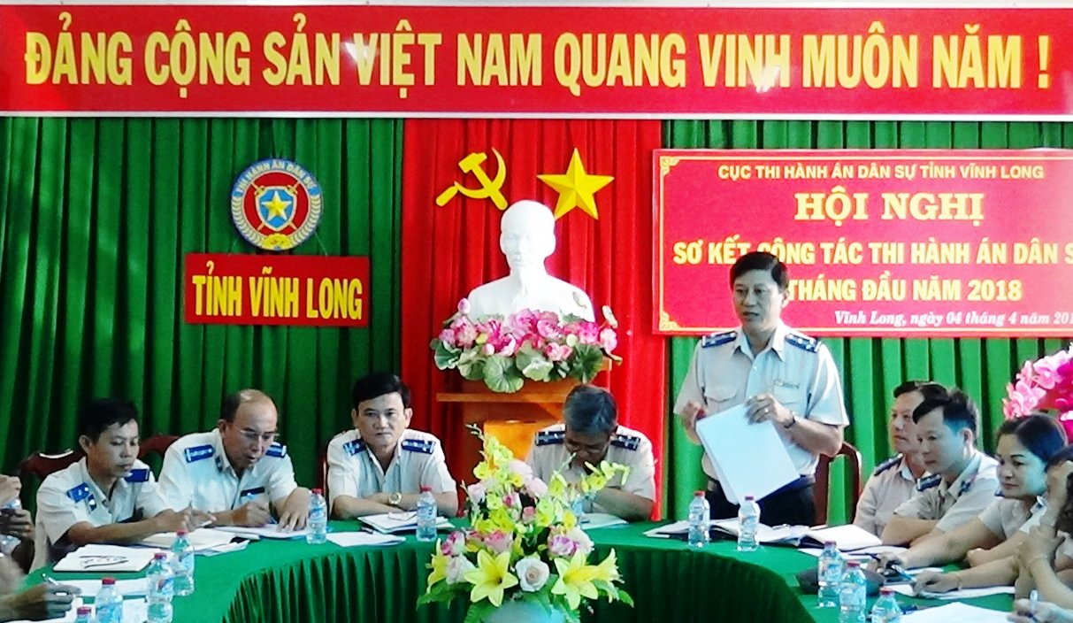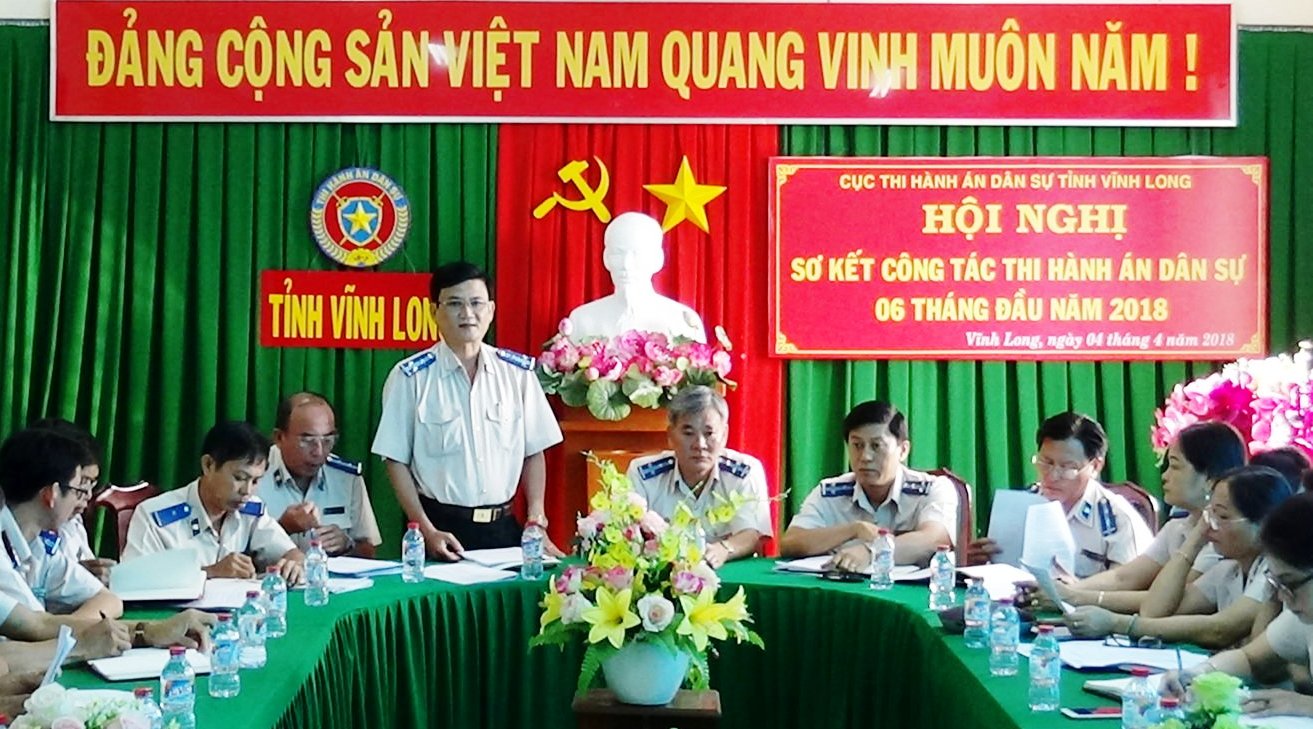 Ngày 04 tháng 4 năm 2018, Cục Thi hành án dân sự tỉnh Vĩnh Long đã tổ chức Hội nghị sơ kết công tác thi hành án dân sự 6 tháng đầu năm 2018. Dự và chỉ đạo Hội nghị có đồng chí Lâm Phước Nghĩa, Cục trưởng Cục Thi hành án dân sự tỉnh; Ban Lãnh đạo Cục có đồng chí Huỳnh Văn Chương, Phó Cục trưởng; đồng chí Nguyễn Thành Thanh Dũng, Phó Cục trưởng Cục Thi hành án dân sự tỉnh; Lãnh đạo các phòng chuyên môn thuộc Cục, Ban Lãnh đạo các Chi cục Thi hành án dân sự huyện, thị xã, thành phố cùng các Chấp hành viên Cục Thi hành án dân sự tỉnh Vĩnh Long.