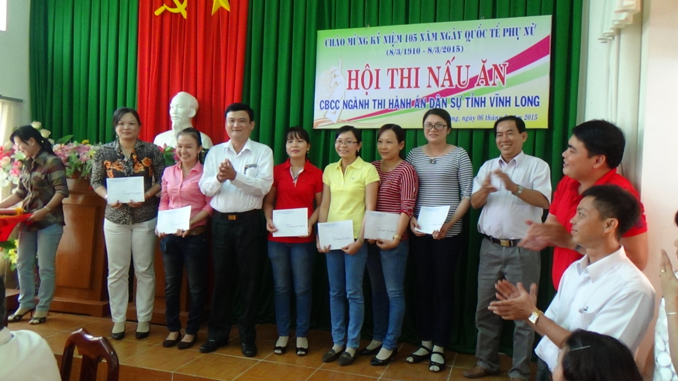 Nhân buổi họp mặt Cục thi hành án dân sự tỉnh chỉ đạo Ban Chấp hành Công đoàn tổ chức triển khai Hội thi nấu ăn nhằm giúp cho chị em phụ nữ vui chơi giải trí và học hỏi rút kinh nghiệm trở thành người phụ giỏi việc nước, đảm việc nhà, trong đó gồm có 09 đội tham gia (Cục và 08 Chi Cục). Kết thúc Hội thi Chi cục Thi hành án dân sự thành phố Vĩnh Long đạt giải nhất, Chi cục Thi hành án dân sự huyện Long Hồ đạt giải nhì, Chi cục Thi hành án dân sự huyện Trà ôn đạt giải ba còn lại đạt giải khuyến khích.