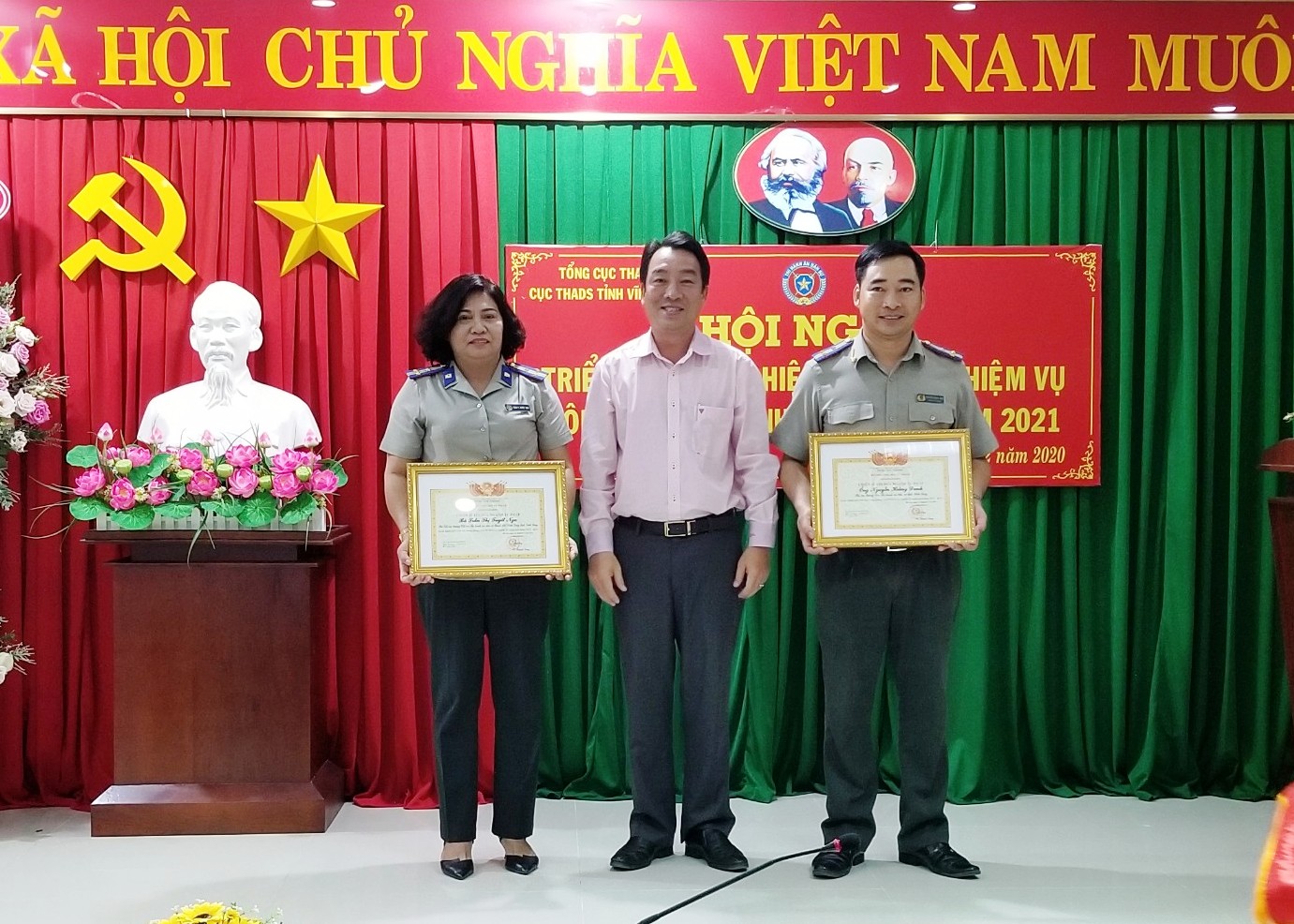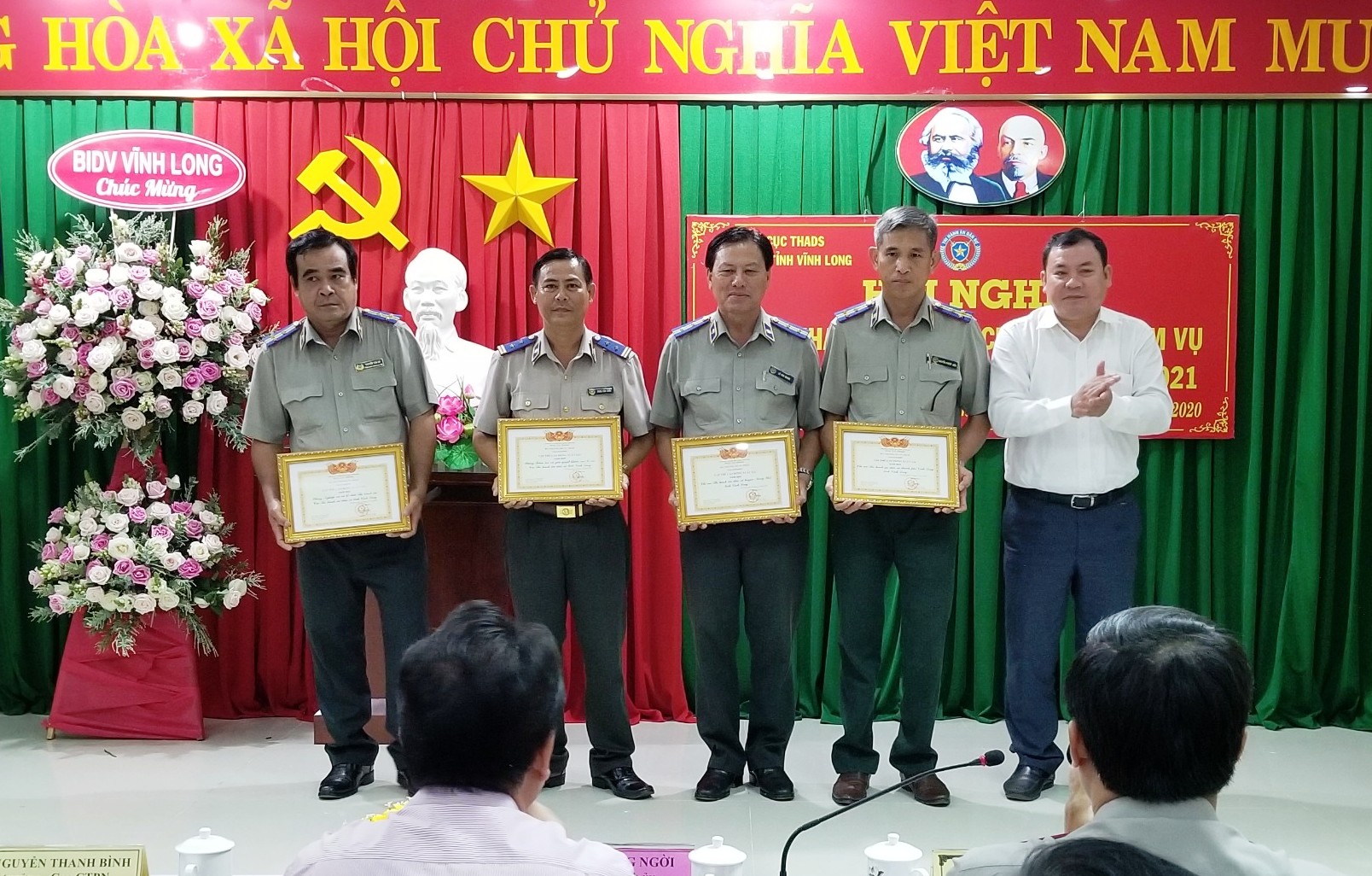 Tại Hội nghị, Cục THADS tỉnh Vĩnh Long cũng vinh dự trao thưởng: Cờ thi đua của UBND tỉnh cho tập thể Cục; Cờ thi đua Ngành Tư pháp, Tập thể LĐSX cho cá tập thể và các cá nhân đạt danh hiệu Chiến sĩ thi đua Ngành Tư pháp, Bằng khen của Bộ trưởng Bộ Tư pháp và Giấy khen của Tổng cục trưởng cho Cục trưởng là Điển hình tiên tiến cấp cơ sở giai đoạn 2015-2020 trong công tác THADS./.